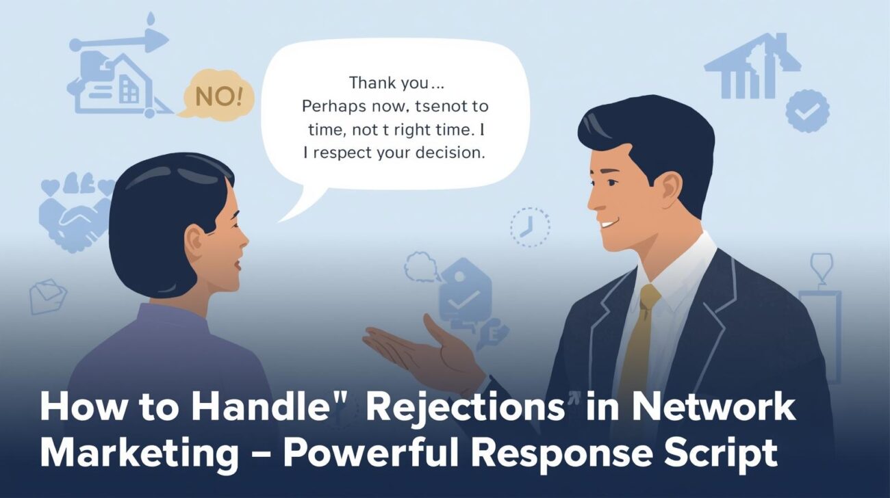 Network Marketing में यह समझना बहुत ज़रूरी है कि ज्यादातर prospects “NO forever” नहीं कहते, बल्कि “NO for now” कहते हैं। इसलिए How to Handle Rejections in Network Marketing सीखते समय यह script आपके लिए एक emotional shield की तरह काम करती है। यह ना सिर्फ आपकी professionalism दिखाती है, बल्कि prospect को भी comfort zone में रखती है।