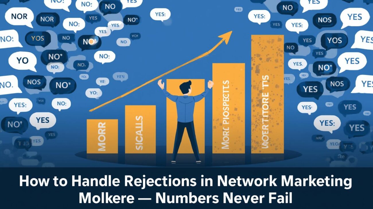How to Handle Rejections in Network Marketing समझने के लिए यह जानना जरूरी है कि यह पूरा सिस्टम एक numbers game है। जितने अधिक लोगों से आप बात करेंगे, उतने ही ज्यादा chances बनेंगे कि कोई आपका product पसंद करे या business opportunity को seriously ले। Top earners कभी एक या दो prospects पर depend नहीं रहते—वे लगातार नए लोगों से connect करते हैं।
